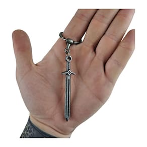 Confeccionado em metal durável pela Tenda Medieval, o Chaveiro Espada possui um acabamento cinza elegante que complementa qualquer conjunto de chaves. Suas características de design incluem uma lâmina precisa e um cabo detalhado, tornando-o uma réplica encantadora de uma espada real em miniatura.