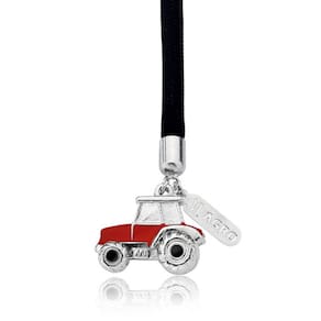 Este chaveiro foi elaborado com um pingente Trator tridimensional, com esmaltação veemelha, paracord na cor preta e argola em inox.