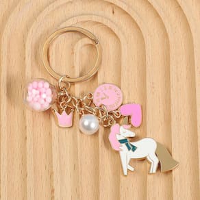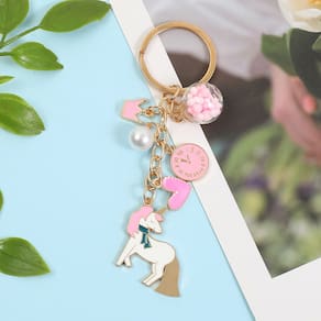 Material: liga de zinco Tamanho: 3,3* 3 cm Peso: 13,5 g Design encantador de unicórnio: este chaveiro apresenta um adorável pingente de unicórnio com uma linda crina rosa, combinado com pingentes de coração, coroa e relógio para uma aparência extravagante e elegante. Liga de zinco de alta qualidade: feito com liga de zinco durável, este chaveiro é feito para durar, mantendo um apelo leve e elegante, perfeito para o uso diário. Versátil e divertido: ideal para dar um toque divertido às suas malas, mochilas ou chaves do carro, este chaveiro é um acessório divertido para meninas e adolescentes que adoram designs fofos e mágicos. Compacto e leve: com um tamanho de 3,3 x 3 cm e pesando apenas 13,5 g, este chaveiro é leve e fácil de transportar, sem aumentar o volume. Ótimo para entusiastas da moda: um acessório perfeito para quem gosta de joias fofas e extravagantes, este chaveiro é uma adição elegante a qualquer coleção.