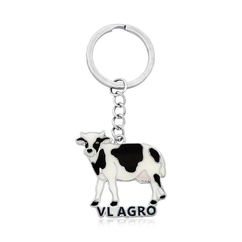 Este chaveiro foi elaborado com argola e corrente em inox e um lindo pingente de vaca leiteira, com esmaltação e revestimento do metal prateado.
