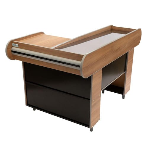 Check-Out ou passador de produtos Artlux é desenvolvidos com material certificado e madeiras recicladas. Corredor (passador) para mercadorias é inclinado e revestido em aço inox que é indispensável para resistir ao movimento. Ideal para padarias, mercearias, mercado e vários outros estabelecimentos.