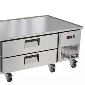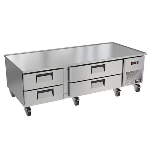 Equipado com rodízios resistentes e travas, o Chef Base permite fácil deslocamento, e as corrediças das gavetas com rolamentos blindados garantem abertura suave e durável. Acompanha cestos perfurados e divisórias para cubas padrão 1/3, 1/2 e 1/1, proporcionando máxima versatilidade no armazenamento.