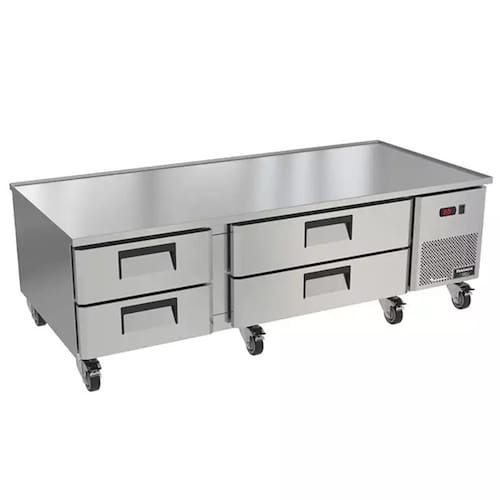 Utilizando gás R290, um fluido natural que não prejudica a camada de ozônio, o Chef Base combina alta eficiência energética com um sistema de refrigeração por ar forçado e tecnologia Frost Free, garantindo temperatura uniforme e degelo automático. Seu acabamento interno em inox 430 brilhoso e externo em inox 430 escovado oferece durabilidade e fácil limpeza, enquanto os cantos internos chanfrados soldados facilitam a circulação do ar e a higienização. Equipado com rodízios resistentes e travas, o Chef Base permite fácil deslocamento, e as corrediças das gavetas com rolamentos blindados garantem abertura suave e durável. Acompanha cestos perfurados e divisórias para cubas padrão 1/3, 1/2 e 1/1, proporcionando máxima versatilidade no armazenamento.