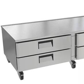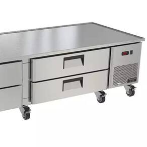 Utilizando gás R290, um fluido natural que não prejudica a camada de ozônio, o Chef Base combina alta eficiência energética com um sistema de refrigeração por ar forçado e tecnologia Frost Free, garantindo temperatura uniforme e degelo automático. Seu acabamento interno em inox 430 brilhoso e externo em inox 430 escovado oferece durabilidade e fácil limpeza, enquanto os cantos internos chanfrados soldados facilitam a circulação do ar e a higienização. Equipado com rodízios resistentes e travas, o Chef Base permite fácil deslocamento, e as corrediças das gavetas com rolamentos blindados garantem abertura suave e durável. Acompanha cestos perfurados e divisórias para cubas padrão 1/3, 1/2 e 1/1, proporcionando máxima versatilidade no armazenamento.
