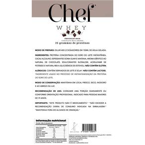 chef whey protein é um suplemento de whey protein gourmet, excelente para atletas e praticantes de atividades físicas que buscam por construção, manutenção e recuperação muscular. Utiliza como fonte de proteína whey protein concentrado zero lactose, a forma mais pura de whey protein que existe. Assim, cada porção de chef whey protein da chef whey contém 25g da mais pura proteína para ganho de massa muscular por dose. Possui o mais alto valor biológico da proteína e a maior capacidade de absorção pelo organismo, além de ser rico em aminoácidos essenciais como o bcaa, elemento diretamente ligado ao aumento da massa muscular magra e à reconstrução dos músculos. Benefícios: tem ação antioxidante; zero lactose; ideal para quem busca o e/ou definição; auxilia no ganho de massa muscular; fortalece o sistema imunológico; auxilia na manutenção e recuperação muscular; equilíbrio do nitrogênio; proteínas de qualidade; alta concentração de bcaa por dose; alto teor de leucina; 25 g de proteínas por dose; não contém glúten; baixa quantidade de carboidratos; auxilia na recuperação muscular. Como tomar: misture 35g dois medidores completo em 150ml de água. Consumir uma porção diariamente ou conforme orientação de um nutricionista ou médico.