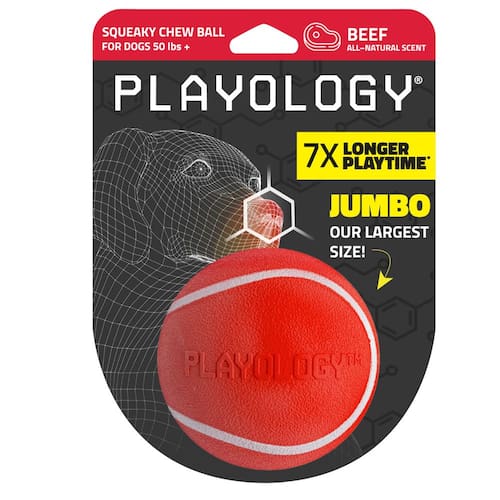 - Conheça a bola de mastigar apertada: com um som divertido e um aroma de carne natural sedutor, esta é a bola de cachorro que seu filhote estava esperando! A bola interativa para cães é projetada para flutuar e é fácil de limpar, o que a torna ótima para brincar na piscina, lago, lago ou praia. O tamanho jumbo é ideal para cães de 22,7 kg ou mais.