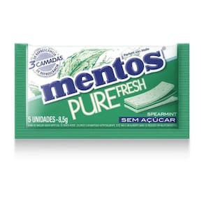 Caixa contendo 15 pacotes com chiclete Mentos 3 Camadas sabor Spearmint com 8,5 gramas cada (5 unidades). Peso total da embalabem 127,5 gramas.