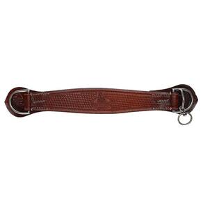 Chinchador A Pantaneira, fabricado em couro nobre com costuras reforçadas e nylon na parte inferior, trabalhado em bordados artesanais com desenhos, detalhes em couro cru e ferragens em aço inox. Utilizado na parte superior do arreio para fixar o látego e o contra-látego da barrigueira dianteira, possui destorcedor onde é fixado o laço, evitando que ele venha a torcer durante a laçada.