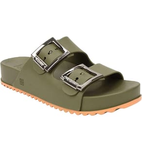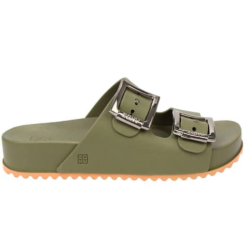 Chinelo Birken Casual Feminino Borracha Tiras com Fivelas Metalizadas Zaxy 18063 - 36 - Verde Musgo
