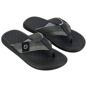 É leve e confortável. Possui dedeira têxtil e tiras com mix de texturas. Sola de EVA robusta.