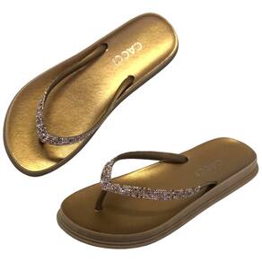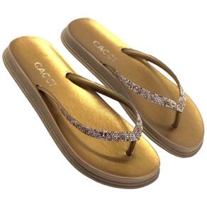 -Estilo Elegante: O design metalizado e os detalhes em strass conferem ao chinelo um visual elegante e glamouroso, perfeito para ocasiões especiais, festas ou para elevar qualquer look casual.