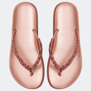 A união entre conforto e praticidade: chinelo! Solado flatform, palmilhas mais largas que garantem muito conforto! O chinelo é produzida no tom champagne, possui bico redondo, tiras finas trabalhadas com cristais em todo cabedal e palmilha anatômica, trazendo ainda mais conforto e praticidade para o seu dia a dia.