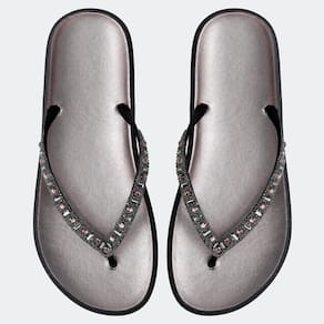 A união entre conforto e praticidade: chinelo! Solado flatform, palmilhas mais largas que garantem muito conforto! O chinelo é produzida no tom champagne, possui bico redondo, tiras finas trabalhadas com cristais em todo cabedal e palmilha anatômica, trazendo ainda mais conforto e praticidade para o seu dia a dia.