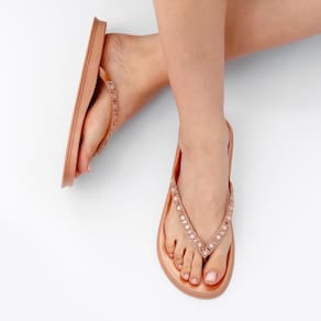 A união entre conforto e praticidade: chinelo! Solado flatform, palmilhas mais largas que garantem muito conforto! O chinelo é produzida no tom champagne, possui bico redondo, tiras finas trabalhadas com cristais em todo cabedal e palmilha anatômica, trazendo ainda mais conforto e praticidade para o seu dia a dia.