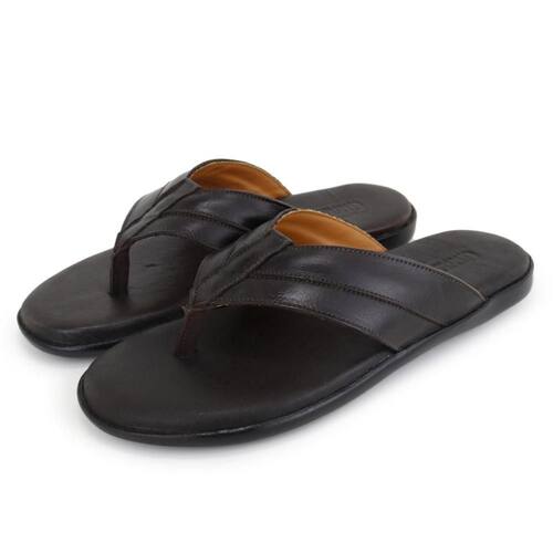 Chinelo de Dedo Couro Masculino Confortável Resistente - 40 - Marrom Chocolate