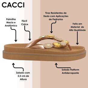 Descubra o equilíbrio perfeito entre estilo e conforto com nosso chinelo flatform Cacci, uma combinação perfeita entre moda e conforto. Com um design moderno, ela oferece uma opção versátil para quem busca praticidade sem perder o charme.