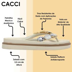 Descubra o equilíbrio perfeito entre estilo e conforto com nosso chinelo flatform Cacci, uma combinação perfeita entre moda e conforto. Com um design moderno, ela oferece uma opção versátil para quem busca praticidade sem perder o charme.