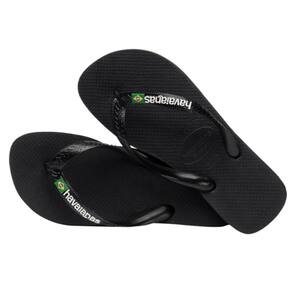 Os Chinelo de Dedo Havaianas Clássico Brasil Logo feitos de solas de borracha flexíveis, resistentes e macias, apresenta cores vivas com um logotipo de baixo relevo destacado e bandeira do Brasil nas tiras
