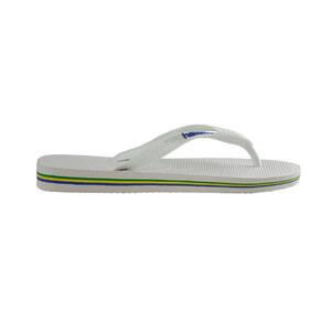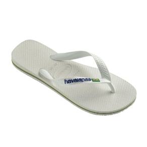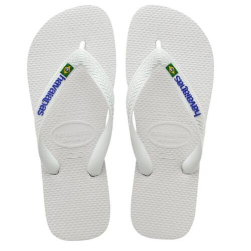 Os Chinelo de Dedo Havaianas Clássico Brasil Logo feitos de solas de borracha flexíveis, resistentes e macias, apresenta cores vivas com um logotipo de baixo relevo destacado e bandeira do Brasil nas tiras