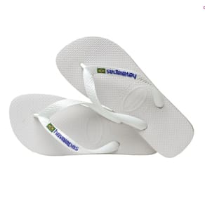 Brasil é verde e amarelo, mas também é de muitas outras cores. Há muitas versões deste chinelo, todas com a famosa bandeirinha, os filetes laterais e várias combinações de tons. Ah, e nem precisa dizer: solado feito em borracha 100% Havaianas.