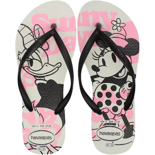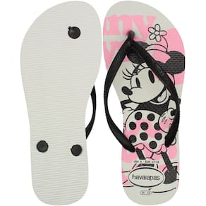 O Chinelo de Dedo Havaianas Slim Disney Feminino é a escolha perfeita para quem adora estilo e conforto. Este modelo traz a icônica Minnie Mouse e o querido Mickey em um visual supermoderno. Com o design slim, ele apresenta tiras e solado mais finos, mantendo a leveza e a alta qualidade que só as Havaianas oferecem. As estampas exclusivas combinam as famosas orelhinhas da Minnie com o clássico padrão de bolinhas, resultando em uma sandália que esbanja charme e diversão. Ideal para adicionar um toque especial e descontraído ao seu visual, esse chinelo promete ser o queridinho dos seus looks casuais, perfeito para qualquer ocasião.