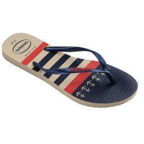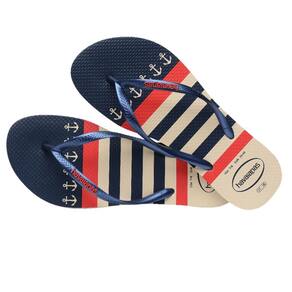 A Havaianas Top Nautical traz todo o charme do estilo náutico com releituras de vários listrados. Seja em azul, branco e vermelho ou em listras com um veleiro no mix, esse chinelo é uma ótima escolha para quem é do mar. Opção perfeita para quem é fã do estilo náutico, as Havaianas Slim Nautical deixam os pés lindos graças à sua sola e tiras fininhas. Com uma cartela de cores clássica e atemporal, além de estampas marítimas, mescla tons de azul-marinho e prata.