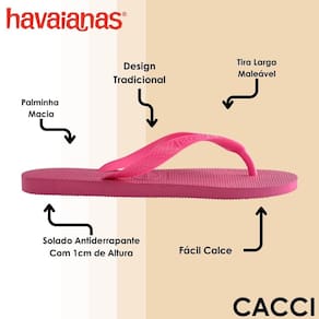 A Havaianas Top tem o DNA Havaianas: é democrática, versátil, clássica, confortável e colorida. Tem para todos os gostos: do básico ao fashion, do neutro ao vibrante. Na nova coleção, destaque para a cartela de cores inspirada no movimento alemão Bauhaus. Havaianas Top é cor, é conforto, é cor, é modelo clássico, é cor, é qualidade que você conhece, é cor, é versatilidade, e já falamos que é cor? São várias pra você escolher! As solas macias e flexíveis são feitas 100% de borracha, tornando-as duráveis e confortáveis, e as tiras texturizadas de PVC mais grossas fornecem estabilidade e frescor.