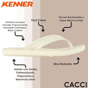 A Kenner Summer deixa o comum de lado e te faz experimentar o mundo do conforto Kenner. Sua tira em gel garante o toque macio na pele, a palmilha texturizada traz a sensação de conforto, e o solado com ondas tridimensionais, proporciona a aderência ideal para pisos molhados. Agora em uma versão especial com a assinatura da Anitta e combinações de cor inéditas.