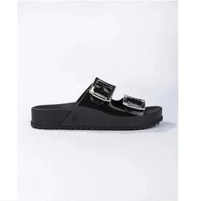 Possui duas fivelas, na parte de cima, dando um charme todo especial. Solado antiderrapante, passando segurança ao caminhar.