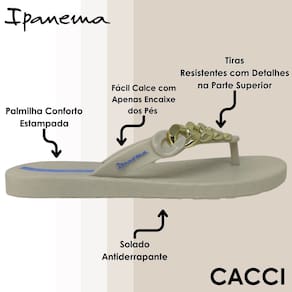 A Ipanema Metal Glam tem um design sofisticado, com enfeites inspirados na tendência das correntes de metal, um clássico que aparece há anos nas principais criações de moda, conferindo um visual ousado e contemporâneo. Perfeito para quem busca inovação e elegância, a corrente é aplicada de forma assimétrica nas tiras, com muito valor através da metalização do enfeite. Combinando conforto e estilo, a coleção Ipanema Metal Glam é ideal para quem busca um toque moderno no seu dia a dia.