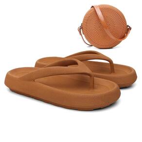 Chinelo Feminino de Dedo Casual + Bolsa Quebek Tiracolo Kit - 36-37 - Mostarda