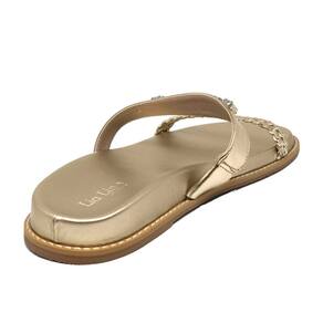 Visual moderno e todo o conforto da palmilha anatômica e salto flatform. Seu design distinto combina harmoniosamente com as pedras delicadamente incorporadas, criando um visual único que chama a atenção.