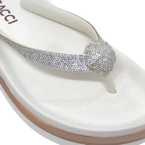 Chinelo Feminino Flat Moderno Conforto Tira Strass Cacci - 39-40 - Branco