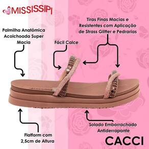 O brilho que transforma qualquer look! O Chinelo Mississipi Slide Flatform Brilho Feminino é a escolha perfeita para mulheres que não abrem mão do glamour, da elegância e, claro, do conforto. Com design sofisticado e detalhes em pedrarias, ele traz um toque de sofisticação irresistível para os pés, tornando qualquer produção ainda mais especial.