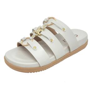 Estilo Sofisticado: As tiras grossas com detalhes metalizados dourados conferem um visual elegante, perfeito para quem quer se destacar com uma peça cheia de charme e modernidade.