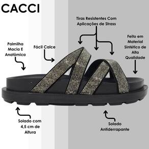 Conheça o novo chinelo Strass da Cacci, o chinelo de se apaixonar por onde for! Feito em material de alta qualidade que trás mais durabilidade ao calçado. Seu destaque é feito por suas tiras repletas de strass aplicados, que trás todo seu charme e atenção, além de tiras resistêntes ela se torna um chinelo fácil calce.