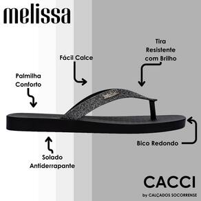 Destaque-se da multidão com o Chinelo Feminino Glitter Melissa Sun Long Beach II 35781. Seja na praia, em passeios descontraídos ou mesmo em um evento informal, este chinelo não apenas acompanhará seu estilo, mas também se tornará o ponto focal de elogios. Invista em moda e conforto, e desfrute da sensação única proporcionada por este elegante e reluzente chinelo Melissa.