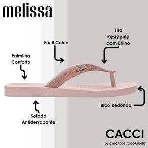 Destaque-se da multidão com o Chinelo Feminino Glitter Melissa Sun Long Beach II 35781. Seja na praia, em passeios descontraídos ou mesmo em um evento informal, este chinelo não apenas acompanhará seu estilo, mas também se tornará o ponto focal de elogios. Invista em moda e conforto, e desfrute da sensação única proporcionada por este elegante e reluzente chinelo Melissa.