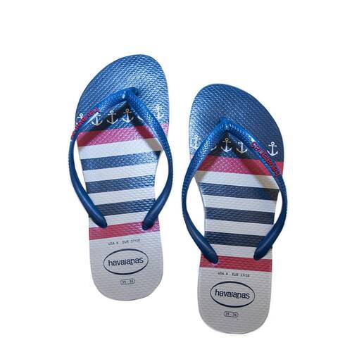 A Havaianas Top Nautical traz todo o charme do estilo náutico com releituras de vários listrados. Seja em azul, branco e vermelho ou em listras com um veleiro no mix, esse chinelo é uma ótima escolha para quem é do mar.