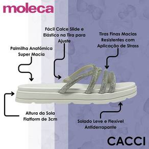 O Chinelo Feminino Slide Papete Brilho da Moleca traz sofisticação e praticidade para compor seus looks com muito charme.