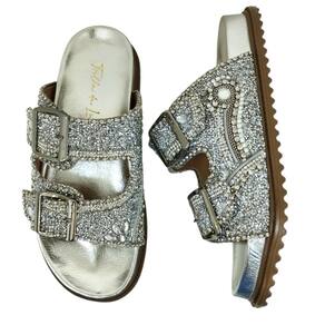 Chinelo Feminino Papete Trilha Da Lua Tiras Brilho Couro Prata ??