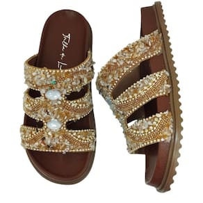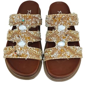Chinelo Feminino Papete Trilha Da Lua Tiras Brilho Couro - Marrom - 36