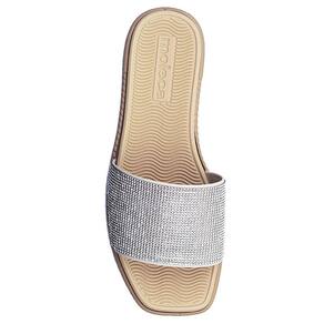 Seu design slip-on facilita o calce e proporciona praticidade no dia a dia. Além disso, sua sola rasteira oferece estabilidade e conforto a cada passo, tornando-o ideal para uso prolongado em diversas ocasiões. Conta com um tira larga super resistente com aplicação de strass, trazendo brilho e glamour.