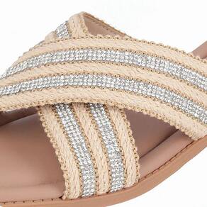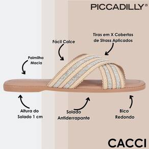 Prática e flexível. A Rasteirinha Gabi da Piccadilly é ideal para mulheres que não abrem mão de conforto e estilo. O calçado é super leve, flexível e ainda possui solado superaderente e antiderrapante, tornando-a indispensável para quem precisa ficar horas de pé no trabalho. Possui duas tiras em X em palha com strass aplicados que trazem todo o charme ao calçado. Sua palmilha é acolhoada e macia fazendo com que você caminhe com mais tranquilidade e conforto. Combine com peças neutras para um look minimalista e chic.