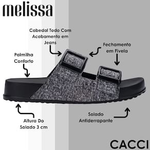 Além de seu visual atraente, a Melissa Cozy M Lover Slide Denim oferece um ajuste perfeito e seguro, graças ao seu design ergonômico. Seja para um passeio no parque ou um encontro com amigos, este slide é a combinação perfeita de praticidade e charme. Um item indispensável para quem valoriza moda e conforto.
