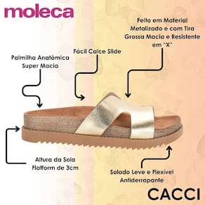 O Chinelo Feminino Slide Metalizado da Moleca é perfeito para acompanhar você nos momentos descontraídos, com muito estilo e conforto. Garanta o seu e brilhe em qualquer ocasião!