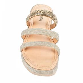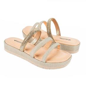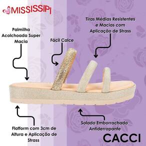 O Slide Mississipi Flatform com Brilhos chega para transformar o seu dia a dia com um toque de sofisticação e modernidade. Com um design que une praticidade e elegância, ele se destaca pelo acabamento metalizado da sola flatform e pelas tiras com aplicação de strass, garantindo um visual moderno e cheio de charme.