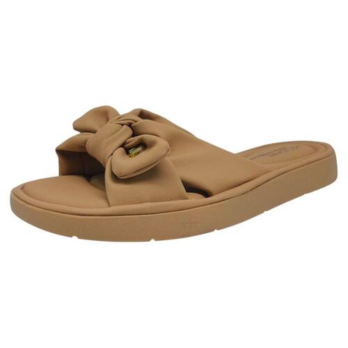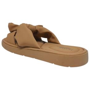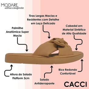 Com tiras largas e maleáveis que se ajustam com suavidade, o calce é fácil e firme, ideal para acompanhar seus passos com segurança. O detalhe em laço delicado na parte superior dá um toque de charme ao visual, enquanto o bico arredondado oferece conforto extra na região dos dedos. O cabedal é feito com material resistente e de qualidade, pensado para durar e manter o visual bonito por muito mais tempo.