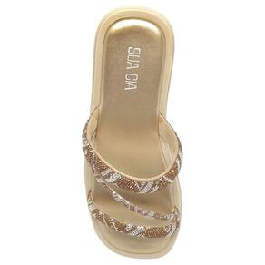 Chinelo Feminino Slide Tratorado Tiras Strass Sua Cia - Amarelo Ouro - 37