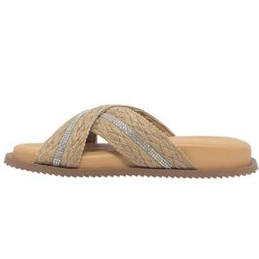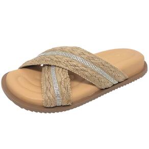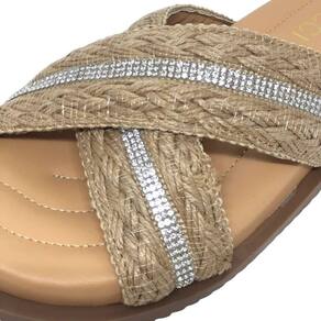 Sua tira feita de material artesanal em palha junto a uma faixa de strass incrivelmente exuberante que destaca a silhueta dos pés de forma elegante. Esse chienlo foi criado para proporcionar um encaixe perfeito e seguro em qualquer momento. São esses pequenos detalhes que fazem toda a diferença, transformando seu look em algo verdadeiramente especial.